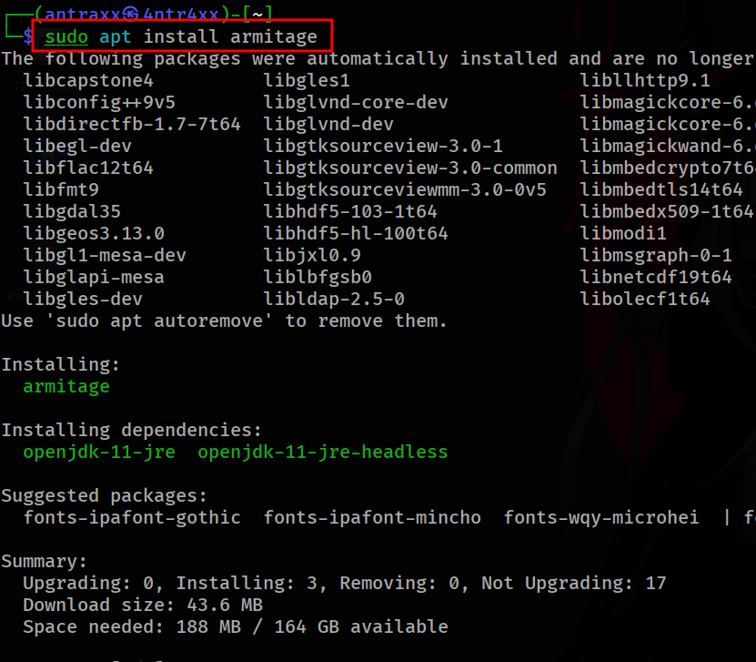 sudo apt install armitage