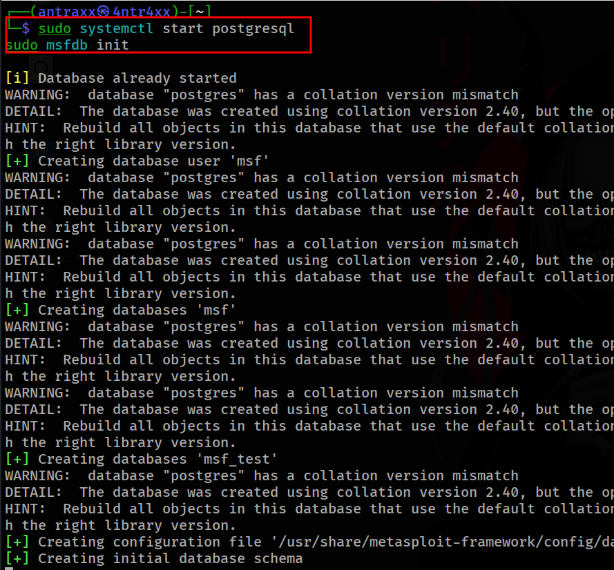 sudo msfdb init
