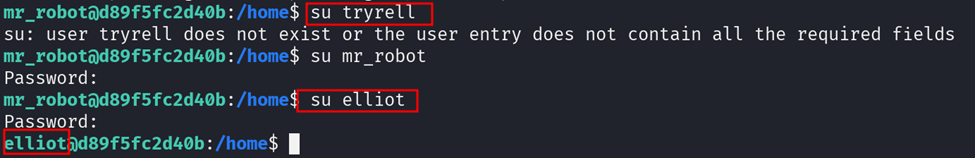 Al revisar el directorio /home/ del servidor vimos que hay 3 usuarios; ellior, mr\_robot y tyrell.