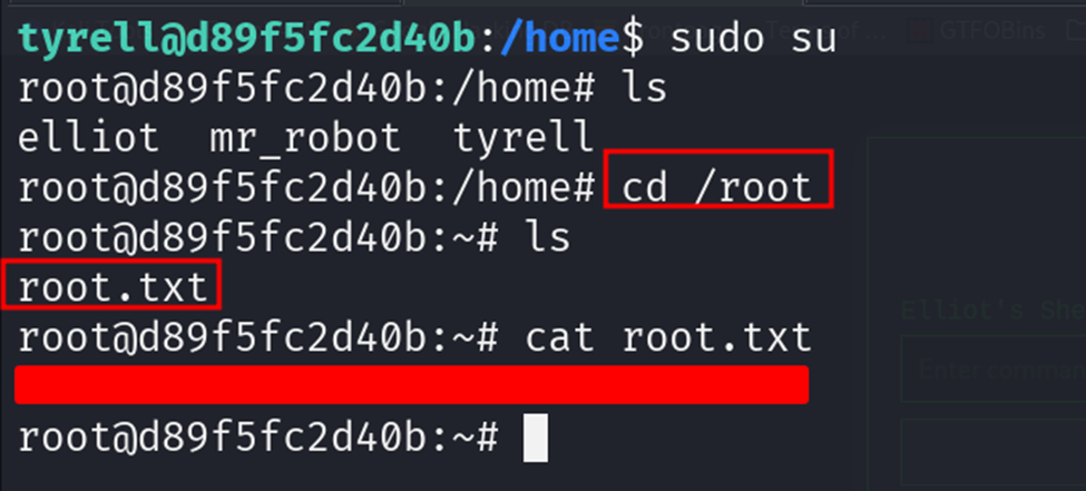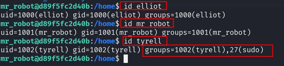 En el usuario tyrell encontramos que pertenece al grupo sudo, asi que intentamos probando las contraseñas encontradas para intentar subir privilegios